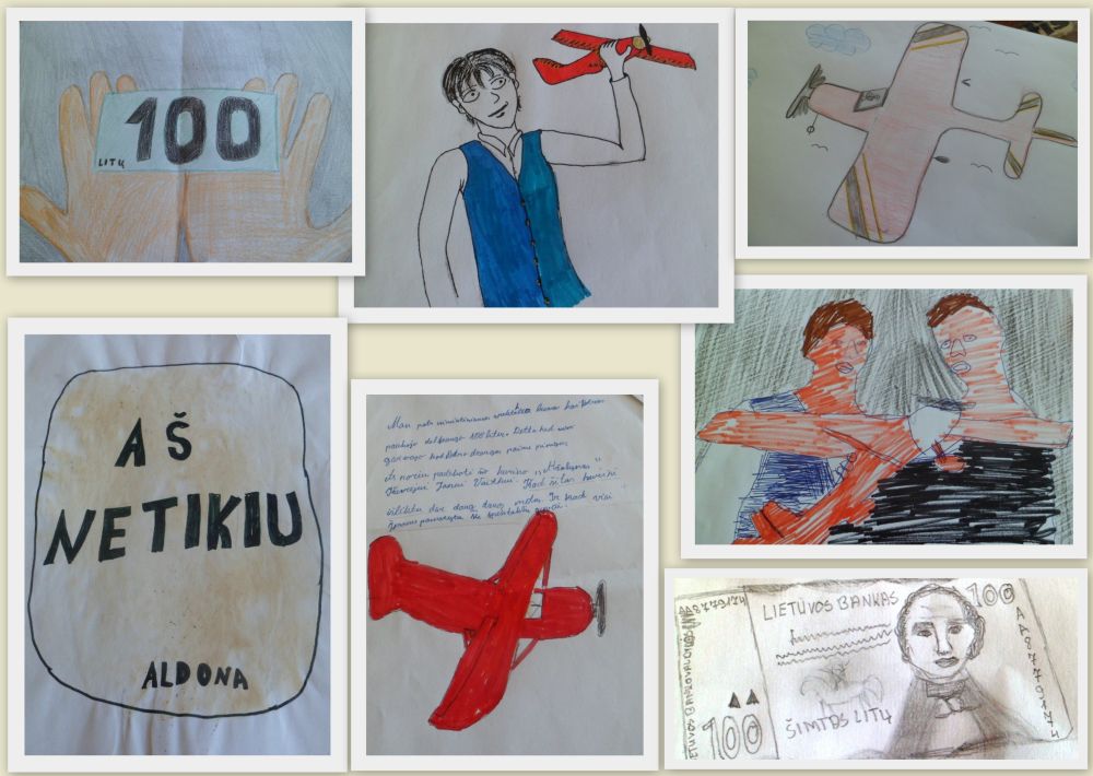 Mokiniai nupiešė spektaklio iliustracijų: draugus Petrą ir Jasių, Jasiaus sklandytuvą, šimto litų banknotą, Aldonos laiškelį Petrui, kūno kultūros mokytoją ir kt.