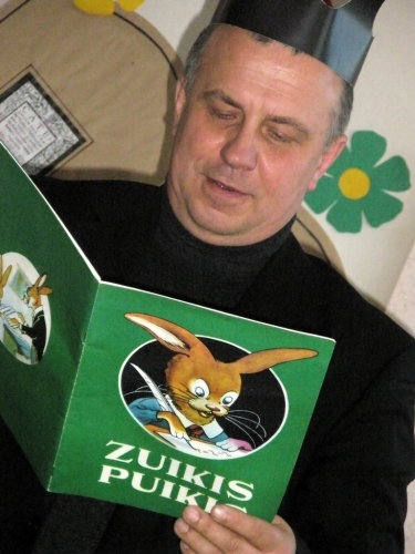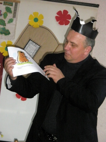 Gerbiamus svečius knygų personažai „Pepė“ ir „Fėja“ pavertė karaliais ir įsakė čia ir dabar sukurti pasaką. Sakinys po sakinio „karaliai“ kūrė nuotaikingą pasaką. Kvatojant žiūrovams, gimė nauja niekur dar negirdėta pasaka „Šokiai bulvėse“. Gerbiamų „karalių“ išmintį mįslėmis tikrino „Zuikis Puikis“ ir „Raganaitė Sabrina“. Išbandyta garsinio skaitymo jėga. „Karaliai“, pasirinkę savo vaikystės laikų knygutę , garsiai skaitė ištraukas. Po to svečiai turėjo pademonstruoti savo namų darbus. Jie nupiešė ir apibūdino labiausiai patikusį pasakos personažą, vardijo skaitytas knygas, kuriose pagrindiniai veikėjai - graužikai. Kalbėta apie pagarbą Knygai. Svečiai prisiminė, kaip jų mokykliniais laikais vaikai elgdavosi su knygomis. Direktorius prisiminė, kaip I klasėje už tai, kad pažymėdamas skaitytą vietą, užlenkė knygutės lapą, gavo iš mokytojos skaudų kirtį per pirštus. Berniukai pademonstravo, kaip bjauriai mokiniai elgiasi su knygomis: parodė „Donelaitį“ - su išbadytu šimtu raidžių, „Žemaitę“, kuriai trūksta lapų, „Robinzoną“, kuriam įlaužti abu šonai ir t.t. Diskutuota apie Juozo Tumo -Vaižganto aprašytą lietuvio valstiečio pagarbų elgesį su knyga. Ir čia pat, „Pepės“ paraginti , valdžios vyrų akivaizdoje, visi prisiekė, jog pasižada gerbti knygas.