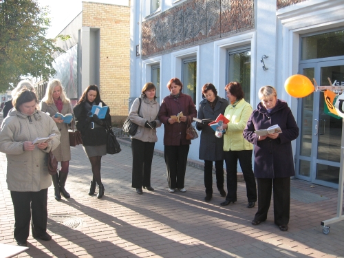 Po akcijos „Sustabdyta minutė – knygai“ radviliškiečiai skubėjo į kitą akciją „Atvirukai iš gimtinės“ – internetinę transliaciją iš KTU. Vėliau Viešojoje bibliotekoje vyko kompiuterinio raštingumo kursai.
