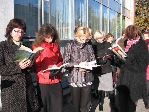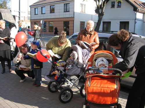 Vidudienį, Viešosios bibliotekos darbuotojai buvo pakviesti į rajono savivaldybę, kur taip pat vyko skaitymai. Akcijos dalyvius pasveikino rajono mero pavaduotojas J. Povilaitis, administracijos direktorius V. Januševičius. Savivaldybės darbuotojai, suprasdami šiandieninę bibliotekų būklę (trūksta pinigų reikalingiausios knygoms įsigyti), parodė savo gerą valią ir padovanojo Viešajai bibliotekai 40 naujų knygų.