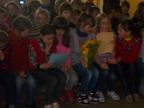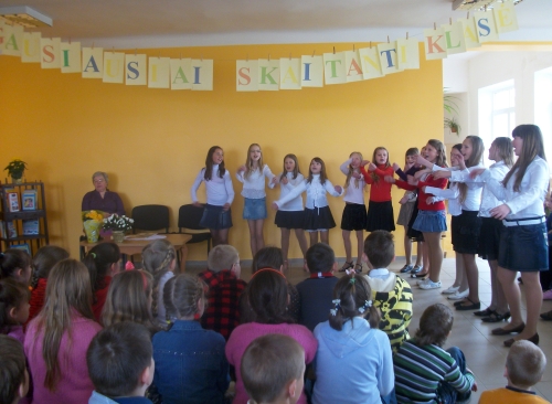 4a klasės mokinė Gustė Varžinskaitė pristatė savo poezijos knygelę „Vaikystės vaivorykštė“. Mažoji poetė papasakojo kaip jai sekasi kurti eiles. Klasės draugai paskaitė Gustės eilėraščių.