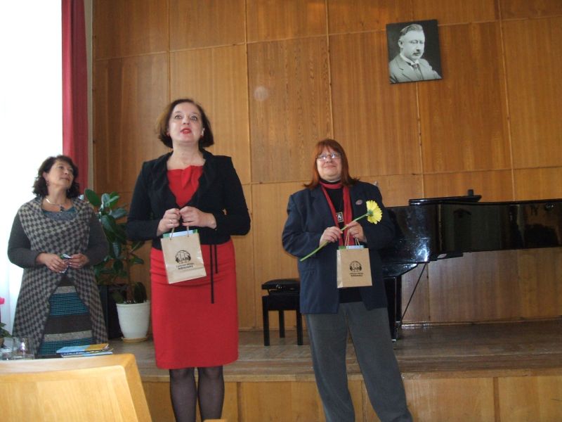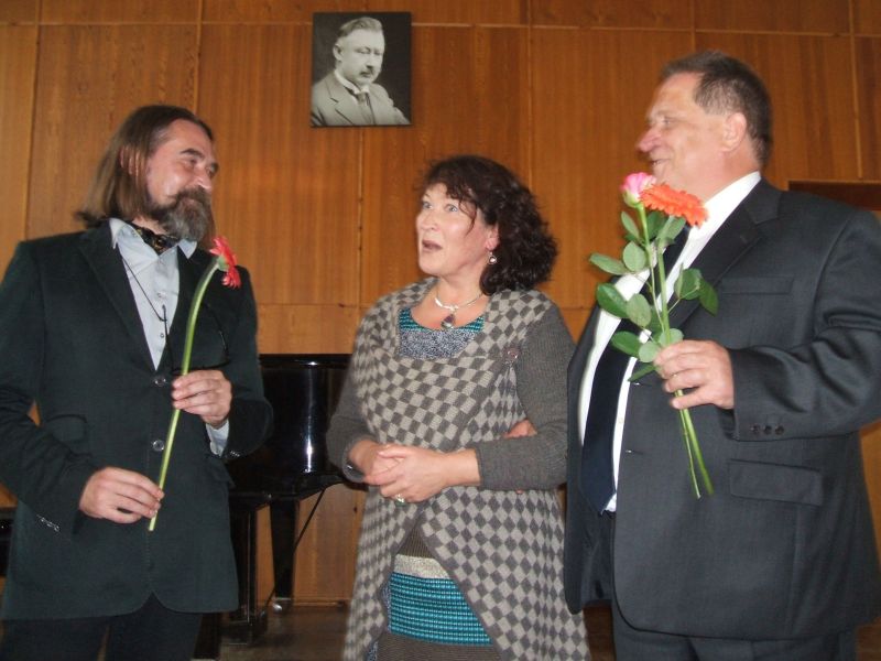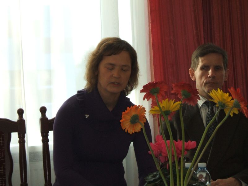 Simbolinę gėlę svečiams įteikė muzikos mokyklos direktorė Birutė Paukštienė – sėdo prie fortepijono ir atliko savo kūrybos dainą, apvainikuodama kūrybos popietę.