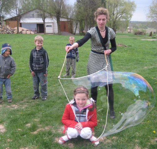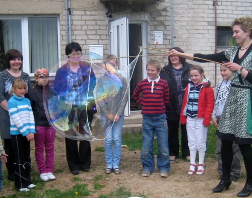 V. Aleksandravičiūtė taip pat vaikams pristatė filmuką apie Gugeliukų šeimyną, sukurtą pagal knygą „Gugeliukai“. Po nuotaikingo pasakojimo vaikai su rašytoja ėjo į lauką ir pūtė muilo burbulus.