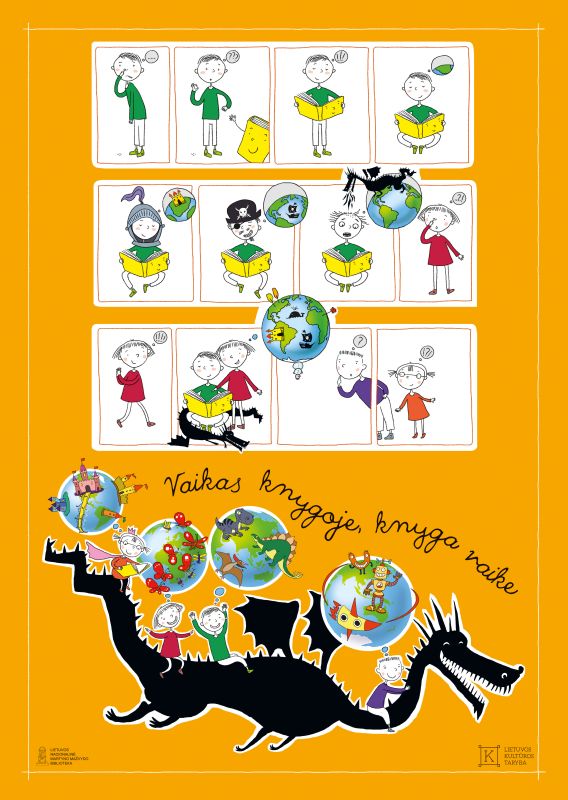 Vizualiąja šio projekto puse – dailininkės Linos Žutautės sukurtu plakatu „Vaikas knygoje, knyga vaike“ – kviečiame dalytis visus, norinčius papuošti savo skaitymo kampelį, biblioteką, mokyklą, klasę ar užsiėmimų kambarį. Telieka jį atsisiųsti ir atsispausdinti.