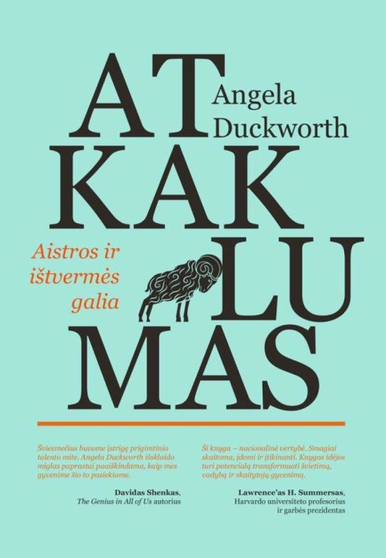 Atkaklumas: aistros ir ištvermės galia / Angela Duckworth; iš anglų kalbos vertė Irena Jomantienė ir Milda Dyke. – Vilnius: Kitos knygos, 2017. – 360 p. – ISBN 978-609-427-263-9