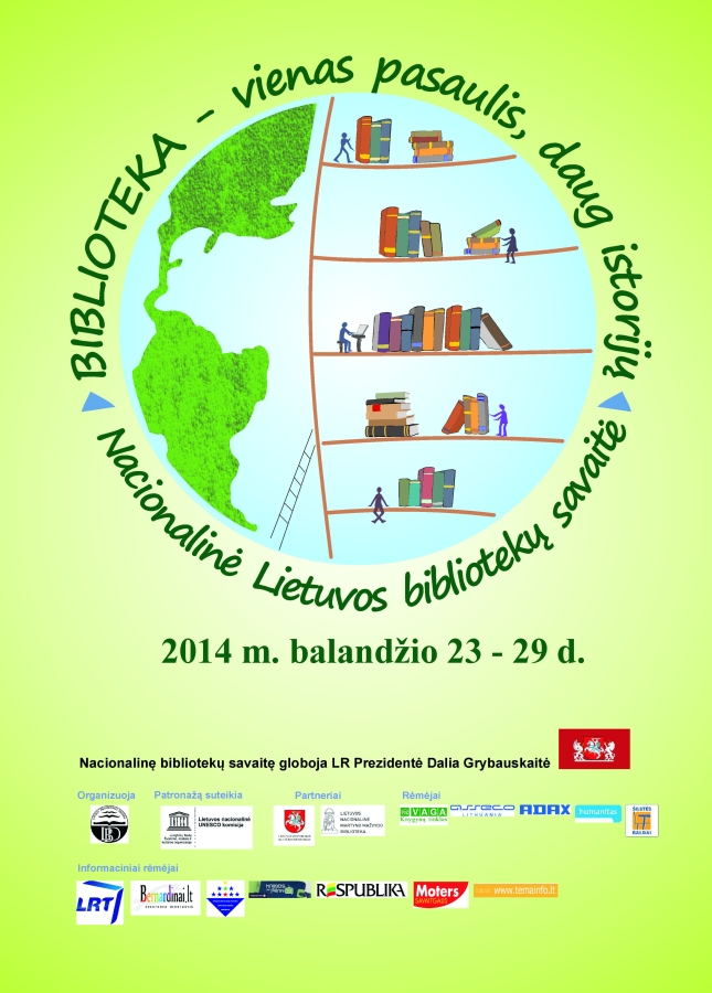Lietuvos bibliotekininkų draugija 2014 metų balandžio 23-29 dienomis skelbia 14-ąją Nacionalinę bibliotekų savaitę „Biblioteka – vienas pasaulis, daug istorijų“, nes biblioteka – tai vieta, kur kiekvienas gali kurti savo istoriją, pilną naujų žinių, idėjų, kūrybos ir bendravimo.