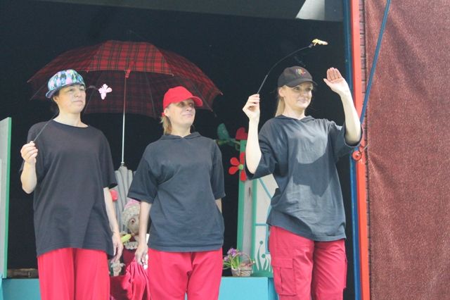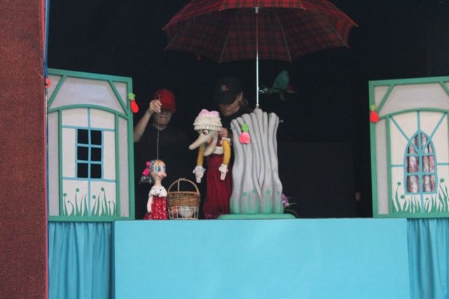 Į spektaklį susirinko gana gausus būrys žiūrovų, nes kvietėme juos ypatingai aktyviai. Nustebome, kai į sceną įbėgusios merginos uždainavo. Repuodamos jos pasakojo apie būsimą lėlių teatro spektaklį. Tai pasaka ne pasaka apie mergaitę, kuri pasuka iš kelio, o moralas – niekur nenuklysti, nors ir koks žavus „vilkas“ tave viliotų.