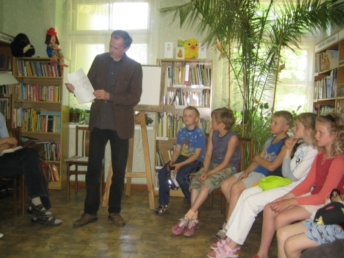 Tokio pavadinimo skelbimu bibliotekininkai pakvietė vaikus į susitikimą su rašytoju, dailininku Kęstučiu Kasparavičiumi. Tai ketvirtasis Vaikų literatūros skyriaus projekto "Skaityk kartu su šeima" renginys, kurį remia Kultūros ministerija.