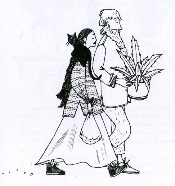 Pirmoji, įrėminanti knygą, gaubia naujuosius žaliojo namo kaimynus – keistuolius vyrą ir moterį, kurių net amžius devynmetei Rasai buvo neaiškus: „Gal trisdešimt, o gal ir šešiasdešimt. Po šešiasdešimt kiekvienam“ (p. 5). Pasirodo jie birželio pirmąją, kai aikštėje švenčiama Vaikų gynimo diena, ir miestelėnus apstulbina savo nešuliais: vyras rankose laiko puodynę su alijošiumi, o ant moters peties tupi katė. Alijošius ir Katė – šitokios pravardės prisegamos atvykėliams. Jiedu nepuola garsintis, kas tokie esą, kukliai gyvena savo gyvenimą, ir tiek. Rasa su jais suartėja, kada ją, įsibauginusią, sušalusią, šlapią, Joninių naktį praleidusią ant baltojo akmens vidury sraunaus upelio, paryčiais randa ragana palaikyta Katė, įvyniojusi į skarą parsineša namo, ir globoja, kol grįžta Rasos mama. Tačiau tame pat žaliajame name gyvenančiai Pirkliais pravardžiuojamai šeimai naujieji kaimynai ne prie širdies. Dėl to, kad Alijošius vaikšto basomis, Pirkliai kaimynus pašaipiai vadina hipiais, o kai dingta sūnus Pirkliukas Petriukas, apkaltina vaiko vagyste. Paslaptis, kas tokie keistieji kaimynai yra, atsiskleidžia vasaros pabaigoje, per Žolinę. Paaiškėja, kad abu jie menininkai. Alijošiumi vadintas Algimantas Daugirdas bibliotekoje surengia fotografijų parodą, netikėtą tuo, kad pro žaliojo namo langą fotografuotas miestelio aikštės grindinys, o Kate pravardžiuota Valerija Daugirdienė koncertuoja kaip dainininkė. Susižavėjimą, drauge ir norą kitaip patirti pasaulį, Rasa išreiškia simboliniu veiksmu – naktį po koncerto nusiauna sportbačius ir iki pat rugsėjo vaikšto basa. Simbolinę prasmę turi ir Katės Valerijos gestas: išvažiuodama iš miestelio, Rasos bute ji palieka alijošių, o katę dovanoja pačiai Rasai. Išorinius savo ypatingumo ženklus kaip kokias relikvijas atiduoda ypatingai mergaitei.