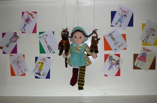 Patys mažieji (šešiamečiai ir pirmokai) sukūrė geriausio vaikų draugo Karlsono portretus (A. Lindgren „Mažylis ir Karlsonas, kuris gyvena ant stogo“). Šešiamečių Karlsonas – savimi patenkintas, labai nuotaikingas, stebi akvariume žuvytes. Pirmokų – labai komiškas, kabantis žemyn galva virš naktinio miesto. Antrokai nupiešė išdykėlę Pepę (A. Lindgren „Pepė Ilgakojinė). Pavaizdavo ją kiekvienas savaip: linksmai ir išradingai, nepakartojamai ir labai juokingai. Trečiokai ir ketvirtokai padarė Mamulės Mū (J. Wieslander „Mamulė Mū“) portretus, išpuošdami karvytes, išmargindami, įverdami auskariukus, išryškindami blakstienas, o vieną jų – net apvainikuodami. Džiaugsmingos karvutės žvelgia į praeivius kviesdamos artimiau susipažinti. Penktokai perskaitė kitą J. Wieslander knygutę („Mamulė Mū laipioja po medžius“) ir iš faneros išpjaustę karvytę, linksmai nudažę, pakabino ant šakos. Tegul kalbasi su varnomis!