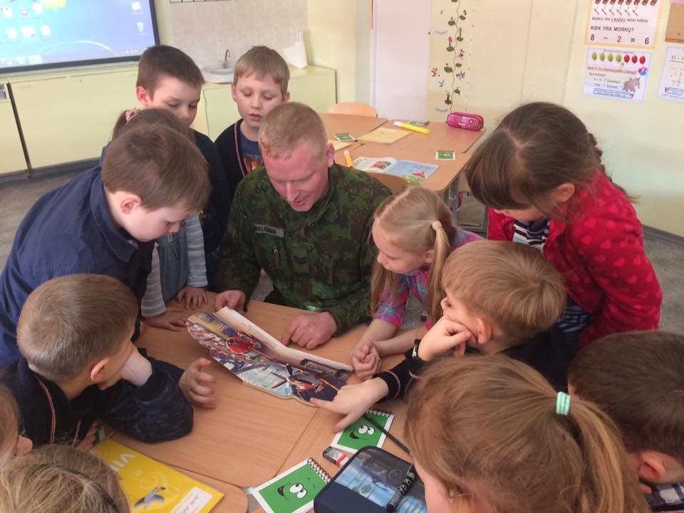 Į Jonavos Raimundo Samulevičiaus progimnaziją atvyko LK KOP OESKV Oro erdvės kontrolės centro seržantas Andrius Žideliūnas su latviškomis knygelėmis: jas skaitė pirmokams ir apdovanojo suvenyrais aktyviausius viktorinos dalyvius.
