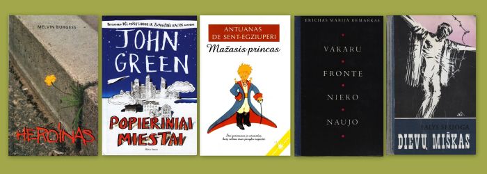 Paauglių knygų penketukas: 1. Melvin Burgess „Heroinas“. 2. John Green „Popieriniai miestai“. 3. Antoine de Saint-Exupéry „Mažasis princas“. 4. Erich Maria Remarque „Vakarų fronte nieko naujo“. 5. Balys Sruoga „Dievų miškas“.
