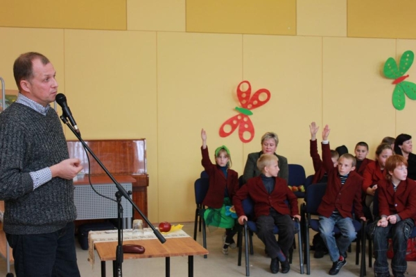 Nurimus rugsėjo klegesiui ir įsibėgėjus mokykliniam darbo ritmui į Kauno r. Babtų gimnaziją pakvietėme rašytoją, poetą, režisierių, kino scenaristą, prodiuserį Vytautą V. Landsbergį. Šio autoriaus knyga „Stebuklingas Dominyko brangakmenis“ išrinkta geriausia 2011 metų vaikų knyga. 4, 5, 6 klasių mokiniai ypač aktyviai ruošėsi susitikimui: skaitė autoriaus vaikiškas knygas, piešė skirtukus knygoms, domėjosi biografija, ruošė knygos ištraukos inscenizaciją.