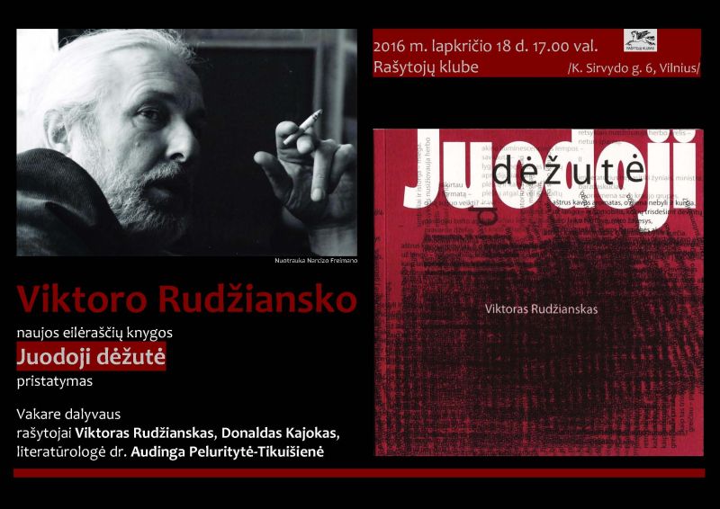 Lapkričio 18 d. 17.00 val. Rašytojų klube renginys iš ciklo „Atradimai: knyga ir rašytojas“. Viktoro Rudžiansko naujos eilėraščių knygos „Juodoji dėžutė“ pristatymas. Vakare dalyvaus rašytojai Viktoras Rudžianskas, Donaldas Kajokas, literatūrologė Audinga Peluritytė-Tikuišienė.