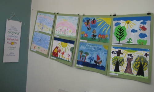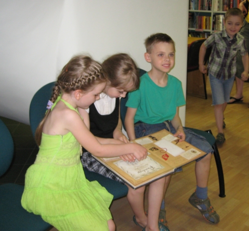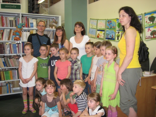 Vaikai džiaugėsi matydami parodoje eksponuojamus savo piešinius, noriai pasakojo apie juos, padeklamavo eilėraščių, po to buvo pakviesti apžiūrėti biblioteką. Jie su dideliu susidomėjimu vartė spalvingas knygeles, žurnalus, linksmai zujo tarp lentynų, kai kurie džiaugėsi, kad jau moka skaityti.