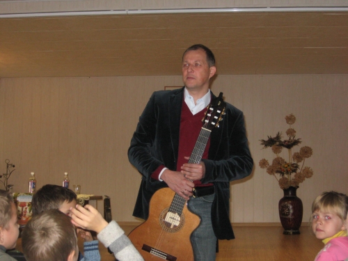 Svečias kartu su vaikais smagiai atliko dainelę apie avižėlę, padainavo romantišką, susimąstyti skatinančią baladę „Jeigu aš numirčiau...“. Po renginio rašytojas pasidžiaugė, kad kaimo mokyklose vaikai nuoširdūs, aktyvūs, tolerantiški ir kūrybiški, o svarbiausia – jie dar tiki, jog gėris ir meilė nugali visas blogybes.