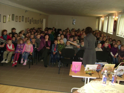 Ruošdamiesi susitikimui, mokiniai perskaitė rašytojo V.V. Landsbergio „Arklio Dominyko meilė“, „Rudnosiuko istorijos“, „Obuolių pasakos“, „Angelų pasakos“ bei kitas knygas, piešė patikusių kūrinėlių iliustracijas, mokėsi išraiškingai perteikti pasakų nuotaiką.