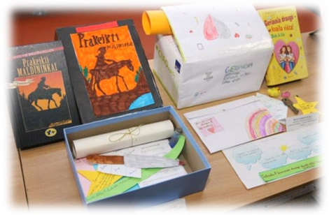 Pristatydami draugams sukurtas paslapčių dėžutes mokiniai pasakojo pagal pateiktus klausimus: Koks knygos autorius ir pavadinimas? Ką nupiešiau ant dėžutės ir kodėl? Kokie pagrindiniai knygos įvykiai? Kaip apibūdinčiau pagrindinį veikėją? Kokie yra antraeiliai veikėjai? Kokius daiktus įdėjau ir kodėl? Kokie buvo nežinomi žodžiai? Ką jie reiškia? Kokią žinią autorius siunčia mums šia knyga? Kodėl šią knygą siūlau skaityti kitiems?