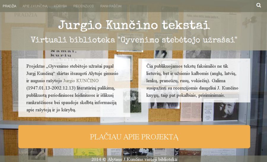 Alytaus Jurgio Kunčino viešoji biblioteka, įgyvendindama projektą „Virtuali biblioteka „Gyvenimo stebėtojo užrašai pagal Jurgį Kunčiną“, sukūrė virtualią biblioteką, į kurią perkelta daugiau kaip tūkstantis su Jurgio Kunčino vardu susijusių tekstų kopijų. Joje skaitytojai gali rasti net nuo 1966 m. spaudoje publikuotą rašytojo kūrybą, recenzijas, rankraščius. Taip pat – daug įdomios informacijos apie rašytojo gyvenimą, net kelios svetainės rubrikos skirtos rašytojo sąsajoms su gimtuoju Alytumi.