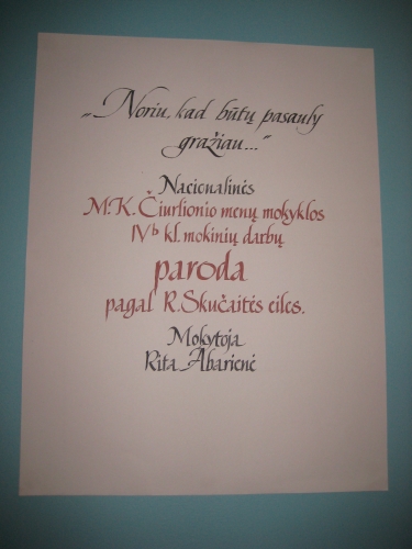 Spalio 21 d. Nacionalinės Martyno Mažvydo bibliotekos Vaikų literatūros centre įvyko Nacionalinės M. K. Čiurlionio menų mokyklos IV b klasės mokinių darbų parodos pagal Ramutės Skučaitės eiles „Noriu, kad pasaulyje būtų gražiau…“ atidarymas.