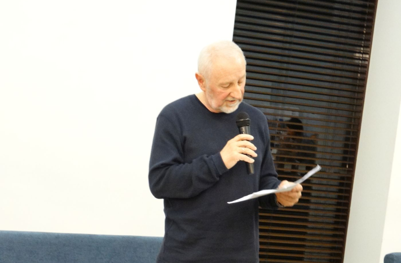 Lietuvių kalbos ir literatūros mokytoja Dangira Nefienė ir muziejininkas, žurnalistas Tautvydas Kontrimavičius pristatė naująją Algirdo Ražinsko – literatų klubo „Marčiupys“ „tėvo“, neseniai šventusio 75-ąjį gimtadienį, knygą „Kasandra: įrašai be datų“ (eilėraščiai, esė), kurioje gilūs filosofiniai pamąstymai suteikia galimybę atsakymą rasti pačiam. Anot paties autoriaus, gyvenimas iš neįgaliojo vežimėlio dažnai būna kitoks: už jo pasaulis verda, liepsnoja. A. Ražinsko eiles skaitė Algirdas Gogelis.