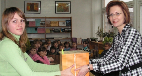 Mokyklos bibliotekininkės Virginija Liandzbergaitė ir Birutė Tylienė