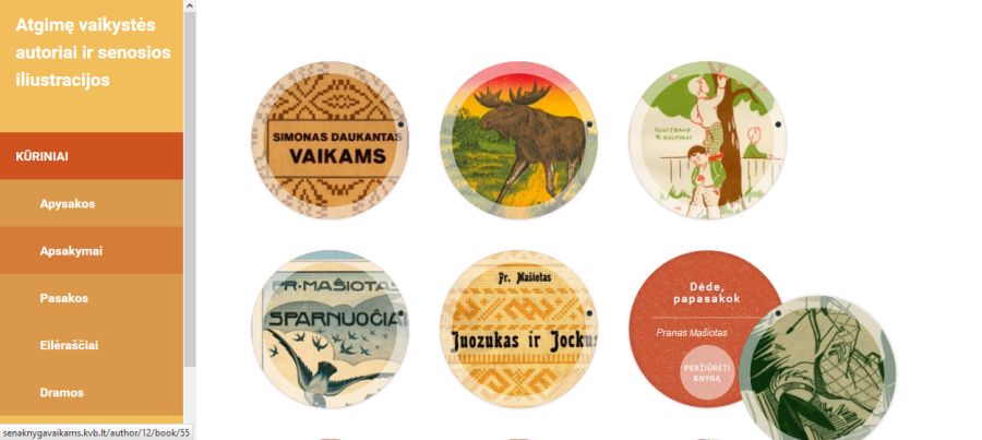 Svetainėje integruota edukacinė programa vaikams „Atgimę vaikystės autoriai ir senosios iliustracijos“. Šioje programoje vaikai ras informacijos apie senuosius lietuvių literatūros autorius ir jų kūrinius. Turės galimybę pamatyti, kokias knygeles skaitė jų seneliai ir proseneliai, pamatys, kokios buvo iliustracijos prieš 70 ir daugiau metų. Be žinomų rašytojų, tokių kaip Pranas Mašiotas, Kazys Binkis, Petras Cvirka pristatomi ir negirdėti, o gal ir pamiršti kūrėjai. Virtualioje programoje vaikai gali pavartyti ir paskaityti knygos ištraukas, gali pasirinkti, ką nori skaityti: pasakas, eilėraščius, apsakymus ar kitų žanrų kūrinius.